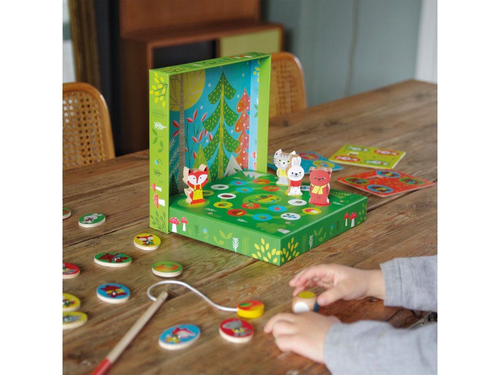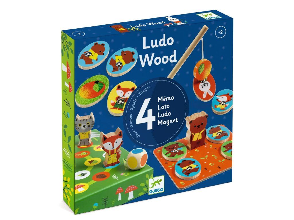 4 hry v lese Ludo Wood je krásna sada pre najmenších, ktorá v jednom balení spája štyri obľúbené hry s roztomilými lesnými zvieratkami. Deti si môžu striedať aktivity podľa nálady – raz chytajú magnetické dieliky, inokedy trénujú pamäť pri pexe alebo skladajú obrázky v lote. Nechýba ani jednoduchá pretekárska hra, kde sa figúrky posúvajú podľa farebnej kocky.
