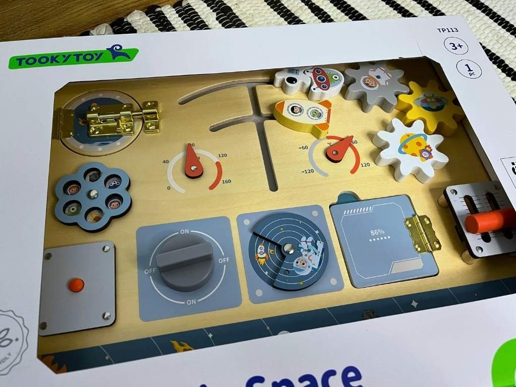 Každý prvok na doske je navrhnutý tak, aby deti lákal k hre a zároveň ich učil. Posúvaním, otáčaním a otváraním si deti precvičujú motoriku a sústredenie. Hračka zároveň krásne doplní detskú izbu svojím dizajnom. Bezpečné materiály, pevné spracovanie a množstvo aktivít robia z tejto dosky obľúbený darček k 1. narodeninám alebo pod vianočný stromček.