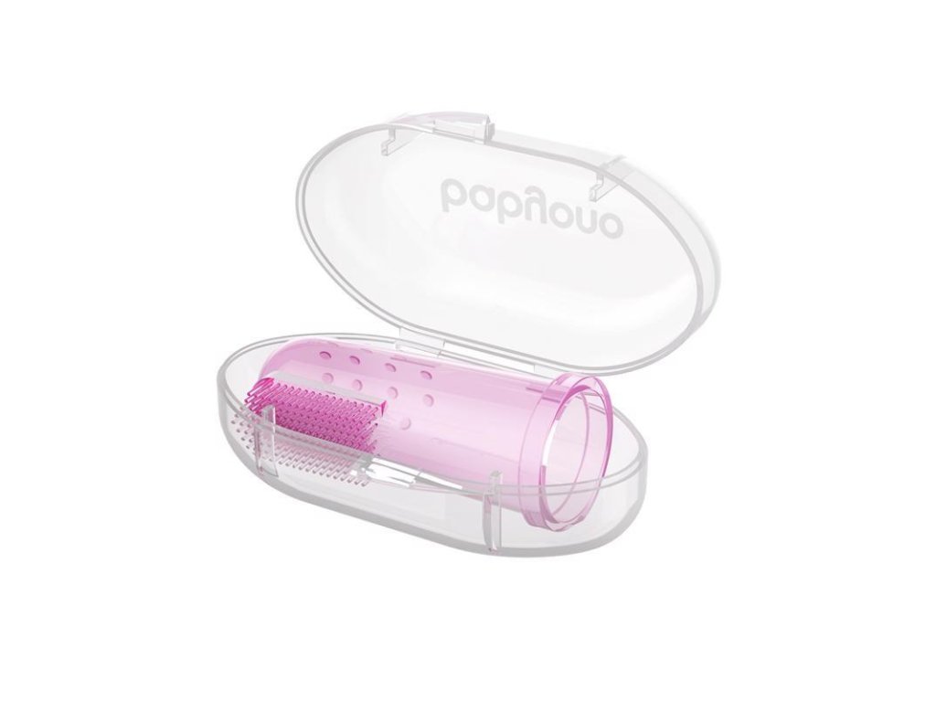 BABYONO Kefka zubná prstová s puzdrom ružová