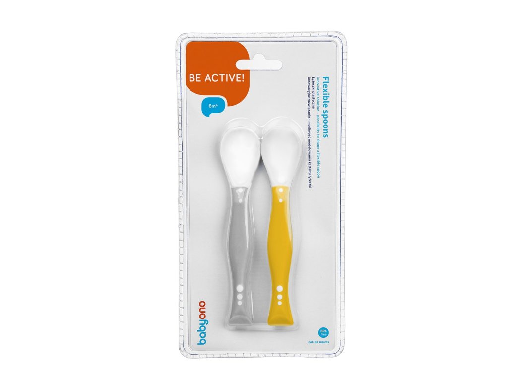 BABYONO Lyžičky flexi 2 ks šedo/žlté