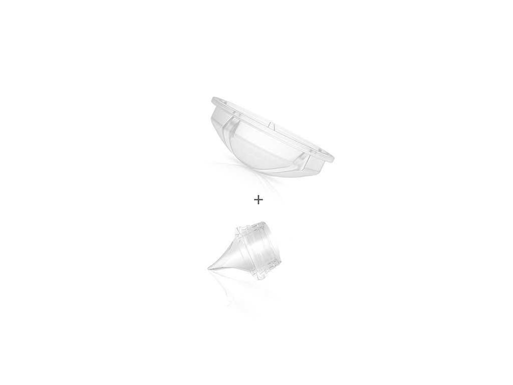 Set obsahuje základný lievik: 28 cm a dve redukcie: 21 mm a 24 mm. Vďaka tomu si môžete prispôsobiť veľkosť lievika Vašej bradavke. Tieto časti sú vyrobené z mäkkého silikónu, takže nedráždia pokožku.