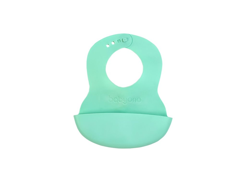 BABYONO Podbradník mäkký plastový s vreckom bez BPA mint 6m+
