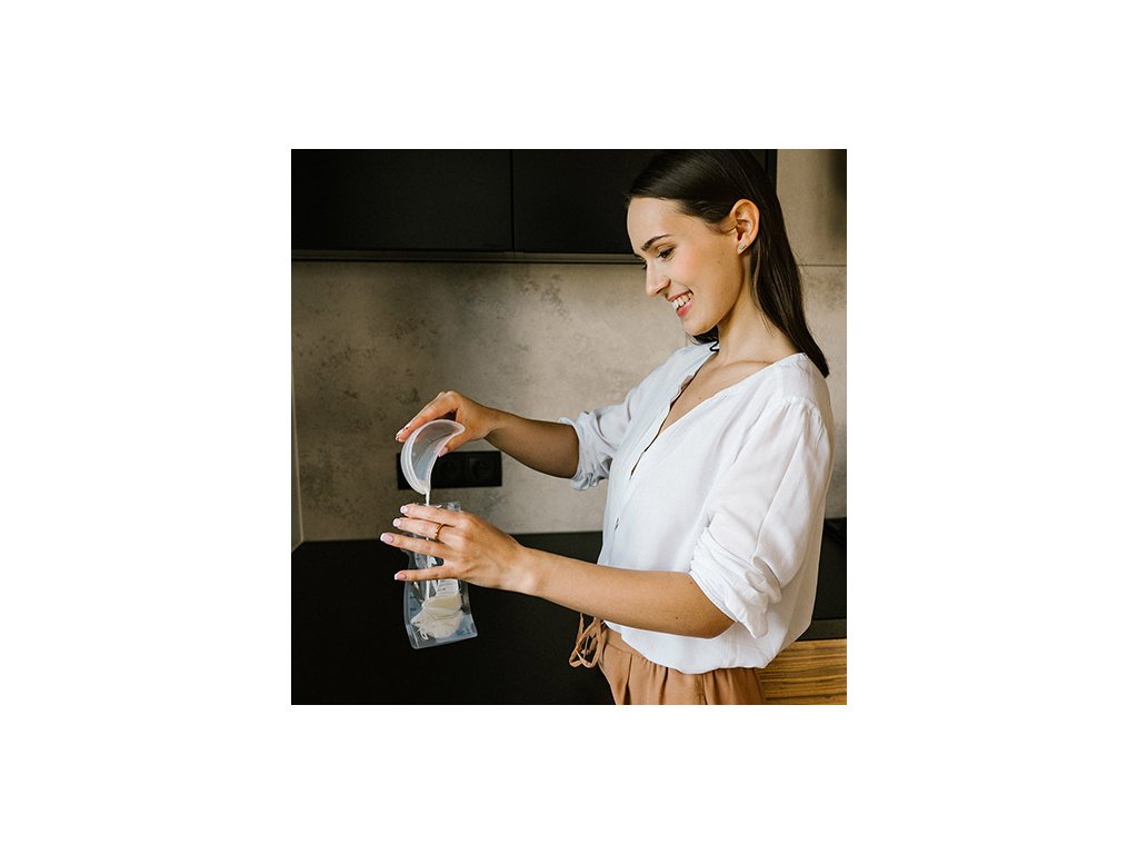 Vrecko uskladní naraz veľké množstvo mlieka - až 180 ml. Presná mierka slúži na odmeranie vhodnej dávky materského mlieka.