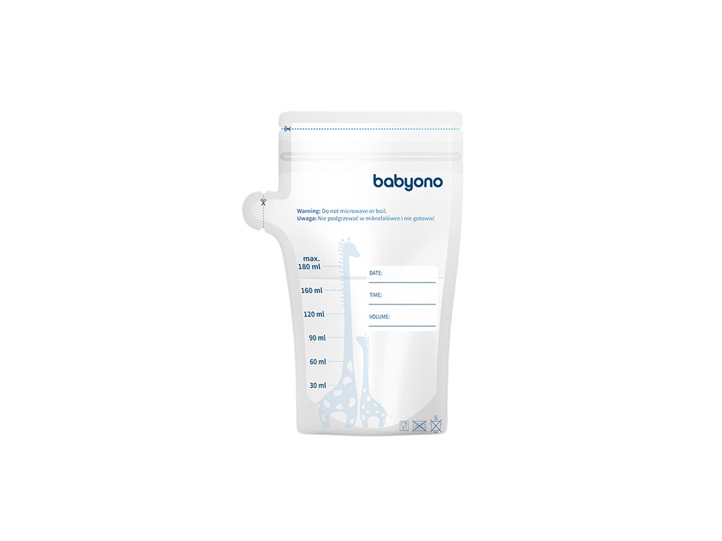 Jednorazové vrecká Babyono sú určené na skladovanie a zmrazenie materského mlieka. Sú bezpečné a hygienické. Zabraňujú zápachu. Stabilná spodná časť vrecka a pevný zips chránia mlieko pred rozliatím, zatiaľ čo primerane tvarovaný lievik zjednodušuje naliať mlieko do fľaše.Tesné uzatvorenie