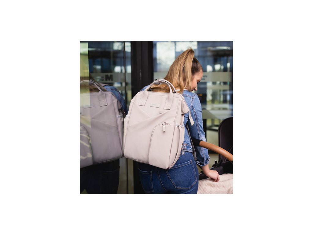 Moderný batoh pre rodičov v elegantnom štýle je dokonalým spoločníkom pre každodenné výzvy. Spája kompaktné rozmery s výnimočnou priestrannosťou a originálnym dizajnom. Ideálny pre milovníčky minimalizmu a prehľadnej organizácie. Vďaka priestrannosti sa doň zmestí všetko potrebné – plienky, fľaše, knihy, tablet aj drobnosti. Vo vnútri sa nachádza až 12 praktických vreciek, ktoré vám pomôžu udržať poriadok vo všetkom, čo potrebujete pre seba alebo bábätko.Vlastnosti:
