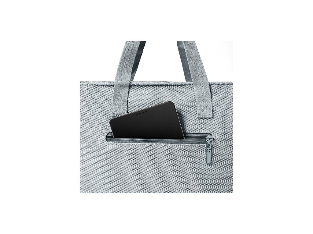- Na výrobu tašky je použitá polyesterová tkanina, ktorá je 100% z procesu recyklácie PET fliaš. Látka spĺňa medzinárodné štandardy, teda Global Recycled Standard (GRS).