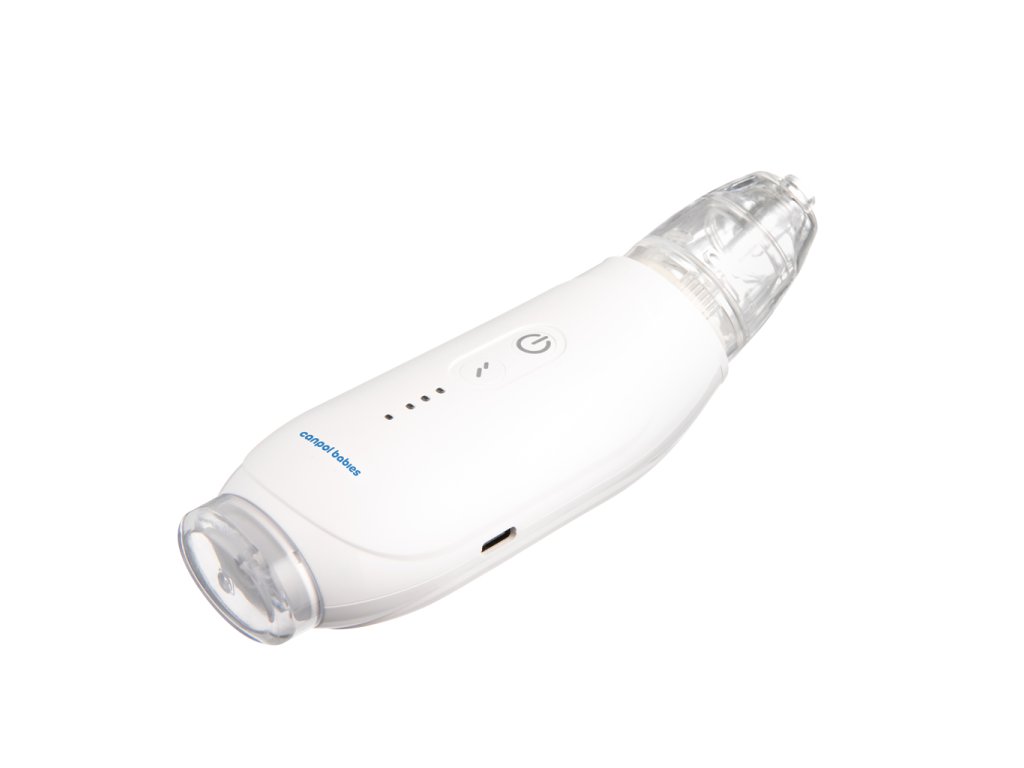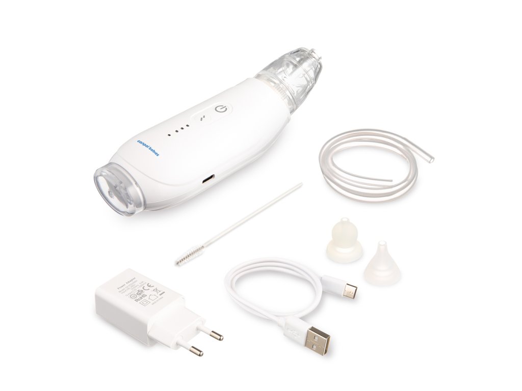 - Ľahko sa udržuje v čistote – vďaka jednoduchej sterilizácii silikónových nosných nástavcov a vyberateľnej nádobke na hlien a čistiacej kefke.