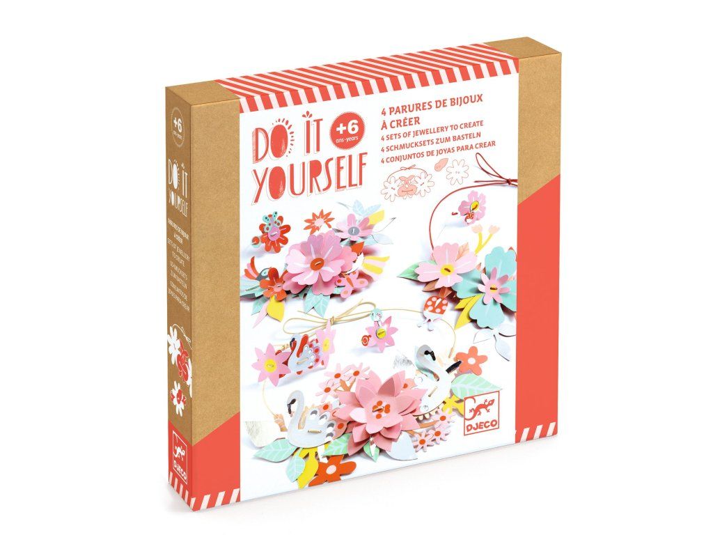 DIY Vyrob si sám Farebná zábava je kreatívna sada na výrobu papierovej bižutérie v sviežom kvetinovom štýle.Deti si postupne poskladajú 4 ladiace sety šperkov – každý set obsahuje náhrdelník, náramok a prsteň.