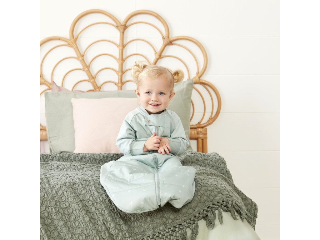 Ocenený vak na spanie sa pomocou 4-cestných zipsov zmení zo spacieho vaku na vak s nohami (overal). Vonkajší materiál z organickej bavlny s počtom vlákien 400 má hodvábne jemný pocit a je vyrobený z ľahko udržiavateľnej tkanej bavlny, ktorá sa na dotyk podobá plochému prestieradlu na vašej vlastnej posteli. Elastické bočné a ramenné panely sú vyrobené z organickej džersejovej bavlny a ergonomicky navrhnuté tak, aby umožnili vášmu dieťatku voľný pohyb a zabránili zamotaniu sa počas spánku.
