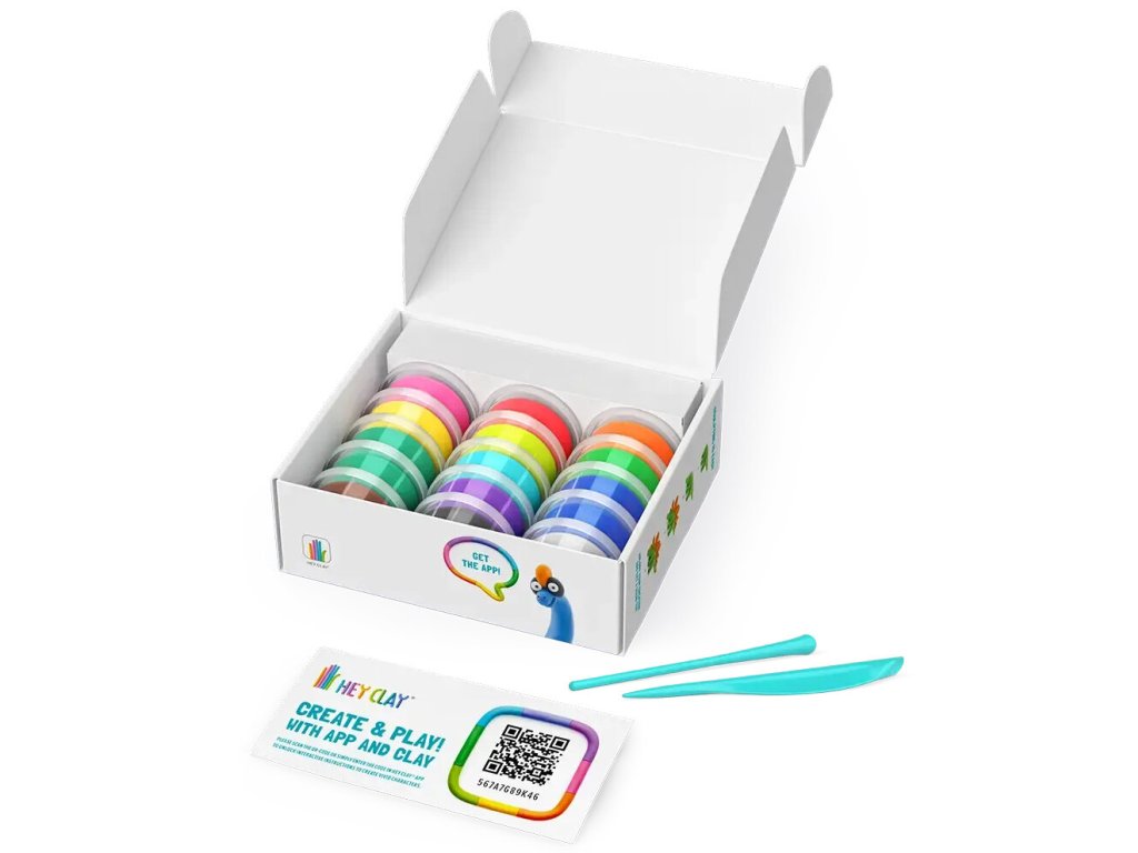- Obsah balenia: 15 téglikov plastelíny, 2 plastové pomôcky na modelovanie, prístupový kód do aplikácie Hey Clay