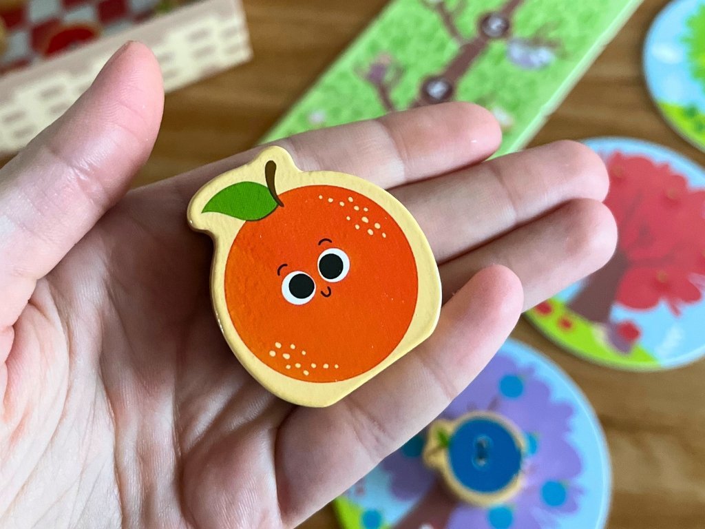 Čo ak padne symbol košíka? V tom prípade deti môžu vybrať akýkoľvek druh ovocia a vložiť jeden drevený dielik do košíka podľa svojho výberu.