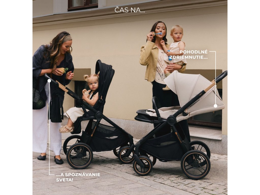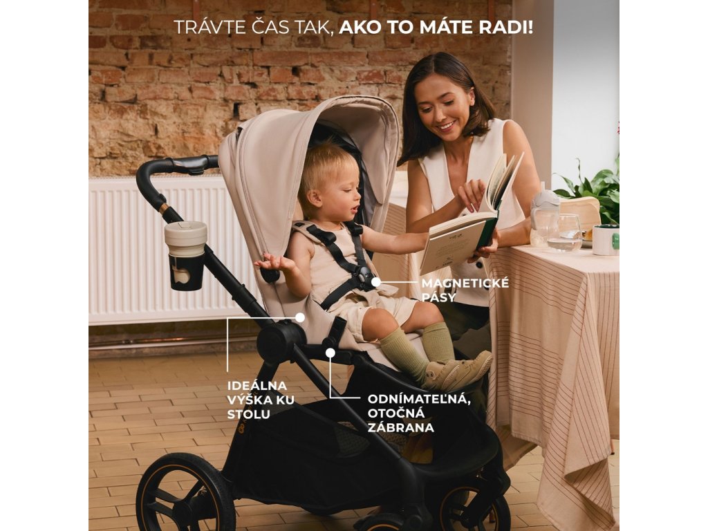 - Obratný kočík – ľahká konštrukcia a pohodlná teleskopická rukoväť pre rodiča umožňujú ľahké manévrovanie – aj jednou rukou!