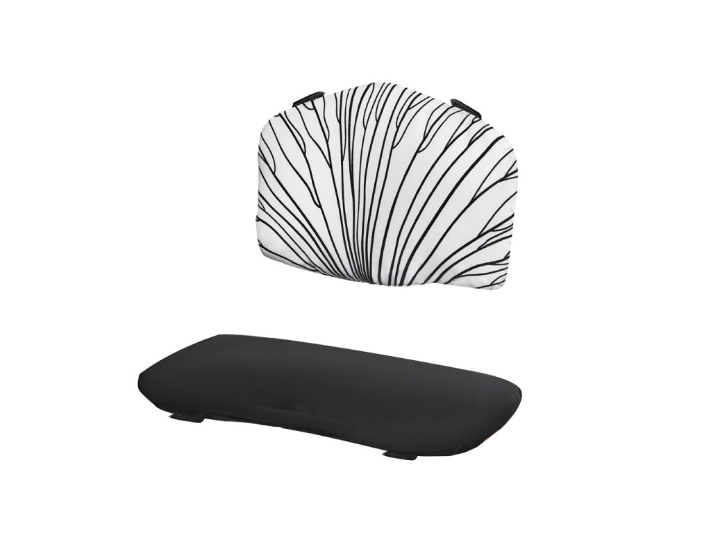 - dva vankúše – na sedadlo a pod chrbát. Poskytujú dieťaťu vhodnú podporu a pomáhajú mu zaujať správnu polohu počas jedenia.