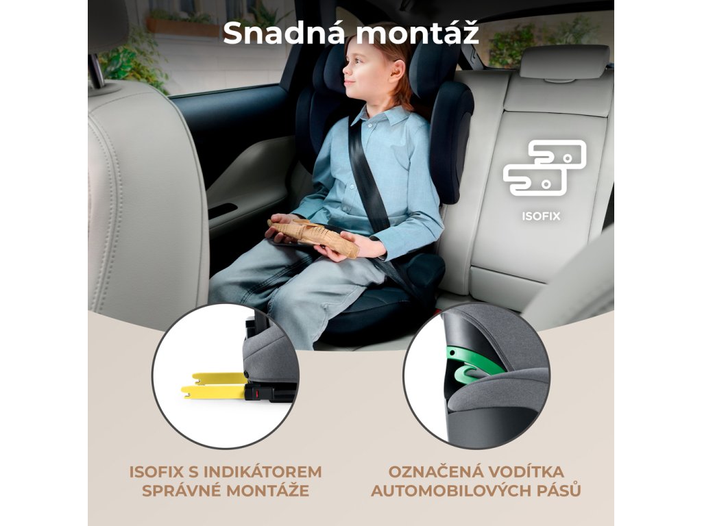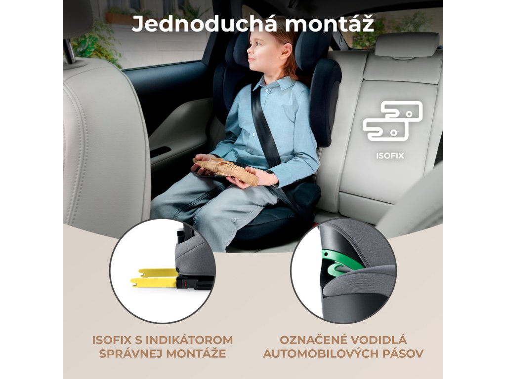 - Inštalácia je možná pomocou systému ISOFIX a 3-bodového pásu auta alebo