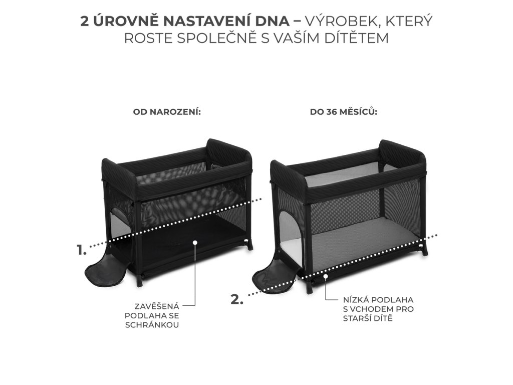 Zavesené dno postieľky poskytuje ideálny priestor na spanie a odpočinok pre vaše dieťatko od prvých dní života, až kým sa nezačne samo stavať (do veku približne 6 mesiacov). Ide o veľmi pohodlné riešenie, ktoré uľahčuje prácu rodičovi, ktorý sa nemusí zohýbať.