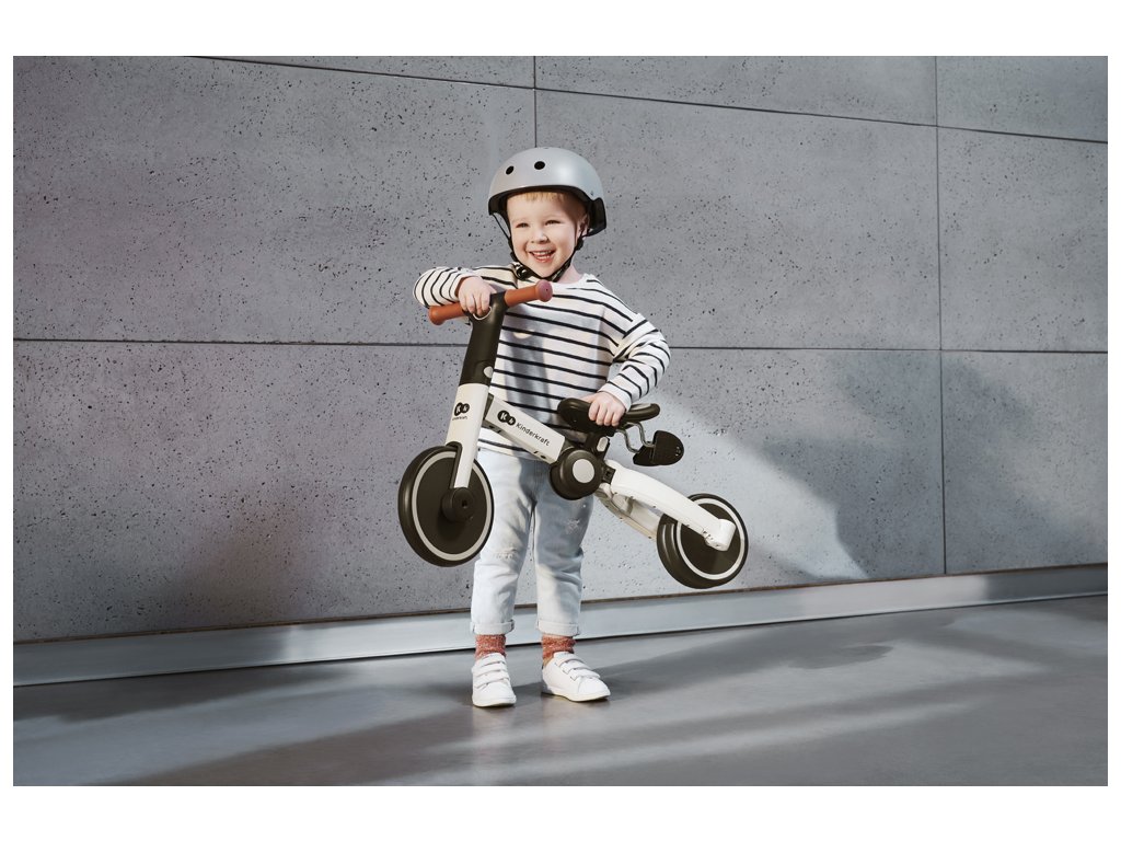 Skladacia trojkolka 4TRIKE je ideálnym spoločníkom na hru vonku: či už sa vaše dieťa chce voziť na trojkolke, alebo sa previezť na minidráhe. Trojkolka 4TRIKE kombinuje tri funkcie v jednom: minikoleso-odrážadlo na troch kolesách (pre deti od 1 roka), miniodrážadlo a trojkolku s pedálmi. Je ideálna na výučbu jazdy: má bezpečnú konštrukciu a je vybavená obmedzeným uhlom riadidiel.Trojkolka 4TRIKE sa v okamihu prispôsobí schopnostiam vášho rastúceho dieťaťa. Vštepí mu lásku k fyzickej aktivite a zároveň mu umožní naučiť sa bezpečne jazdiť. Je to jedinečný detský bicykel, ktorý umožňuje rýchlu zmenu funkcií bez potreby náradia - a to v okamihu, aj počas prechádzky! Vďaka hliníkovému rámu je bicykel ľahký, takže keď sa vaše dieťatko rozhodne objavovať svet na vlastných nohách, môžete ho jednoducho chytiť za špeciálnu rukoväť na riadidlách alebo ráme a vziať ho so sebou, aby ste svojho malého cestovateľa naháňali.