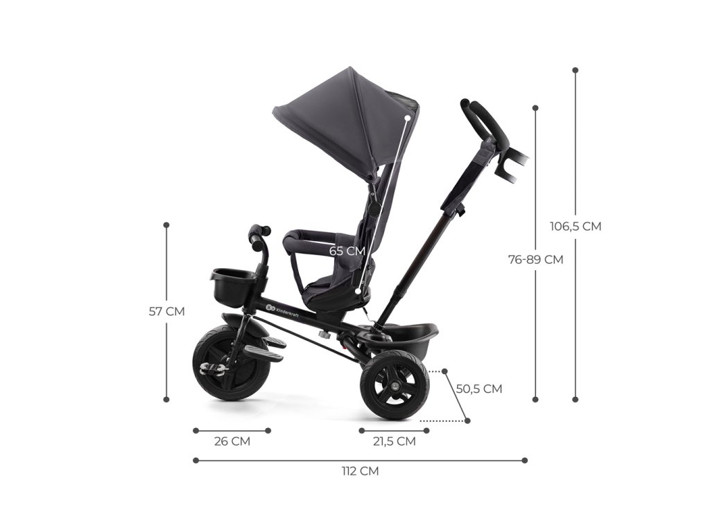Trojkolka AVEO od spoločnosti Kinderkraft je výrobok vhodný pre deti od 9 mesiacov do približne 5 rokov. Je vybavená odolnými kolieskami, ktoré nie je potrebné nafukovať. Ďalšou výhodou detskej trojkolky AVEO je otočné sedadlo, ktoré umožňuje nastavenie v smere alebo proti smeru jazdy. Ide o výrobok, ktorý rastie spolu s dieťaťom, skladacia konštrukcia a modulárna konštrukcia umožňujú tento bicykel ľubovoľne pretvárať a prispôsobovať veku dieťaťa.Veľké kolesá do každého terénu
