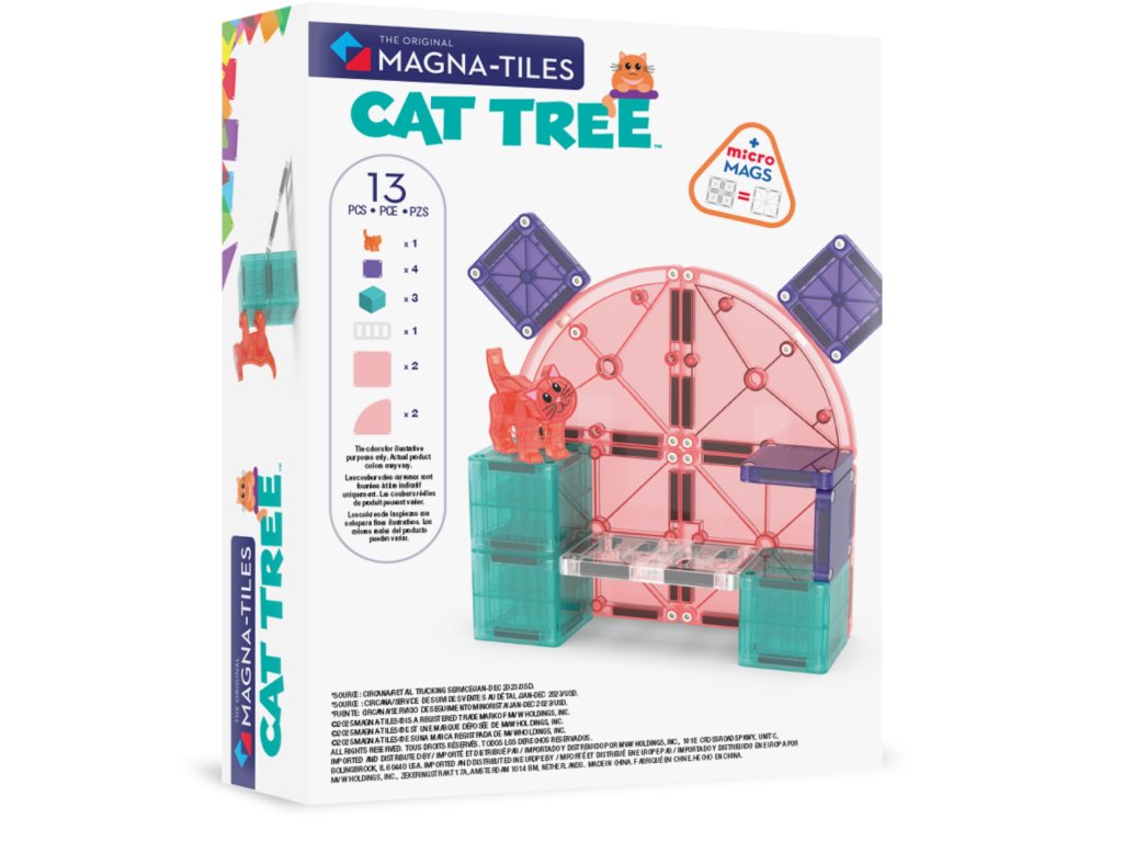 Magnetická stavebnica Cat Tree 13 dielovMačacia zábava vo veľkom štýle – šplhanie, hranie a mňaukanie vítané!Vitaj v svete, kde vládnu fúziky, tlapky a nekonečné lezenie! S MAGNA-TILES® Cat Tree si deti postavia dokonalý mačací raj – od útulného domčeka až po vysokánsku škrabaciu vežu. S pomocou microMAGS dielikov a roztomilej figúrky mačky sa každé hranie premení na dobrodružný deň v mačacom svete plnom fantázie.Čo robí Cat Tree takou výnimočnou?Jedinečná figúrka mačky – pripravená liezť, hrať sa a oddychovať vo svojom novom domčeku.Dieliky microMAGS a štvrťkruhové dlaždice – ideálne na tvorbu originálnych mačacích stavieb.Možnosť stavať veže, byty aj paláce – každá stavba je novým mačacím dobrodružstvom.Prečo si ju deti aj rodičia zamilujú?Podporuje kreativitu a samostatnosť – Stavanie bez návodu? Áno, prosím!Rozvíja jemnú motoriku, koordináciu ruka-oko a logiku – Učenie hrou nebolo nikdy zábavnejšie.Perfektný darček pre malých dobrodruhov – Odporúčané pre deti od 3 rokov.Bezpečné a odolné prevedenie – Sú vyrobené tak, aby vydržali nespočetné hodiny hrania a neobsahujú BPA, ftaláty ani latex.Navrhnuté pre zmysluplnú hru – Bez potreby asistencie dospelých, len čistá radosť.Dodatočné parametre