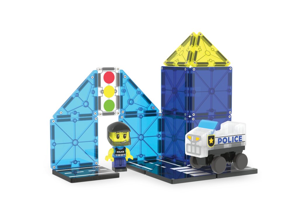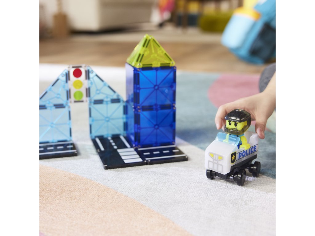 Magnetická stavebnica Police Patrol 20 dielovHliadkuj, stavaj a zachraňuj – tvoja misia začína práve teraz!Staň sa strážcom svojho magnetického sveta! S touto stavebnicou Magna-Tiles® Police Patrol sa každé dieťa zmení na skutočného ochráncu mesta – postaví vlastné vozidlo, vymyslí akčné príbehy a bude hliadkovať ulicami plnými dobrodružstiev. Fantázia tu nepozná hranice!Čo robí túto stavebnicu výnimočnou?Univerzálne vozidlo – umožňuje navrhovať rôzne typy vozidiel, od áut po skateboardy.Mix & Match figúrka policajta – vymieňateľné časti pre nekonečné kombinácie a zábavu.Dlaždica so semaforom microMAGS – nová úroveň hry plná pravidiel a poriadku.Plne kompatibilná s ostatnými sadami Magna-Tiles® – Viac dielov = viac možností.Prečo si ju deti aj rodičia zamilujú?Podporuje kreativitu a samostatnosť – Stavanie bez návodu? Áno, prosím!Rozvíja jemnú motoriku, koordináciu ruka-oko a logiku – Učenie hrou nebolo nikdy zábavnejšie.Perfektný darček pre malých dobrodruhov – Odporúčané pre deti od 3 rokov.Bezpečné a odolné prevedenie – Sú vyrobené tak, aby vydržali nespočetné hodiny hrania a neobsahujú BPA, ftaláty ani latex.Navrhnuté pre zmysluplnú hru – Bez potreby asistencie dospelých, len čistá radosť.Dodatočné parametre