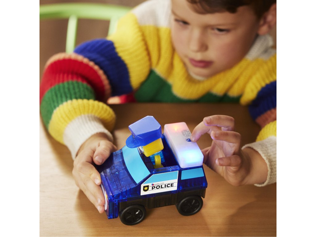 Magnetická stavebnica Police Station 35 dielovPripravení na akciu? Postav si vlastnú policajnú stanicu a zachraňuj deň!Vstúpte do sveta akcie, kde blikajú svetlá, húkajú sirény a malí hrdinovia majú hlavnú úlohu! So stavebnicou Magna-Tiles® Police Station sa každé dieťa stáva šéfom polície, dizajnérom stanice aj záchranárom v jednom. Stačí pár dielikov a zábava plná fantázie sa môže začať.Čo robí túto stavebnicu výnimočnou?Realistické zvuky a svetlá – Interaktívne svetelno-zvukové dlaždice vytvárajú atmosféru skutočnej akcie..Dve figúrky policajtov + vozidlo Pullback – Ideálne pre napínavé naháňačky a hrdinské misie.Plne kompatibilná s ostatnými sadami Magna-Tiles® – Viac dielov = viac možností.Prečo si ju deti aj rodičia zamilujú?Podporuje kreativitu a samostatnosť – Stavanie bez návodu? Áno, prosím!Rozvíja jemnú motoriku, koordináciu ruka-oko a logiku – Učenie hrou nebolo nikdy zábavnejšie.Perfektný darček pre malých dobrodruhov – Odporúčané pre deti od 3 rokov.Bezpečné a odolné prevedenie – Sú vyrobené tak, aby vydržali nespočetné hodiny hrania a neobsahujú BPA, ftaláty ani latex.Navrhnuté pre zmysluplnú hru – Bez potreby asistencie dospelých, len čistá radosť.Dodatočné parametre