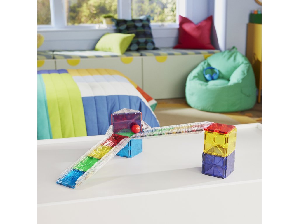 Postav, spusti, sleduj! S magnetickou stavebnicou MAGNA-TILES® Rail Racers (33 dielov) sa každé dieťa stáva architektom vlastnej pretekárskej dráhy. Priehľadné "koľajnice sa" spájajú bez akýchkoľvek spojok – stačí ich len zacvaknúť a jazda sa môže začať. Vďaka dlhým stabilným oporám dokážu deti dráhu postaviť úplne samé – bez asistencie dospelých.