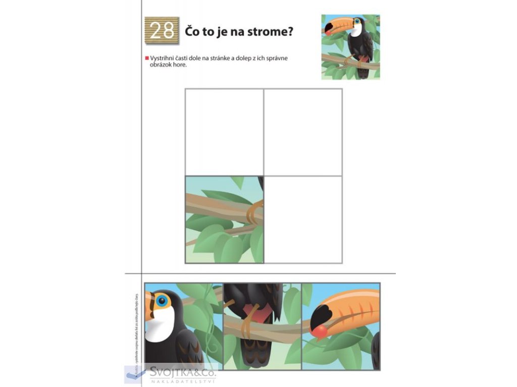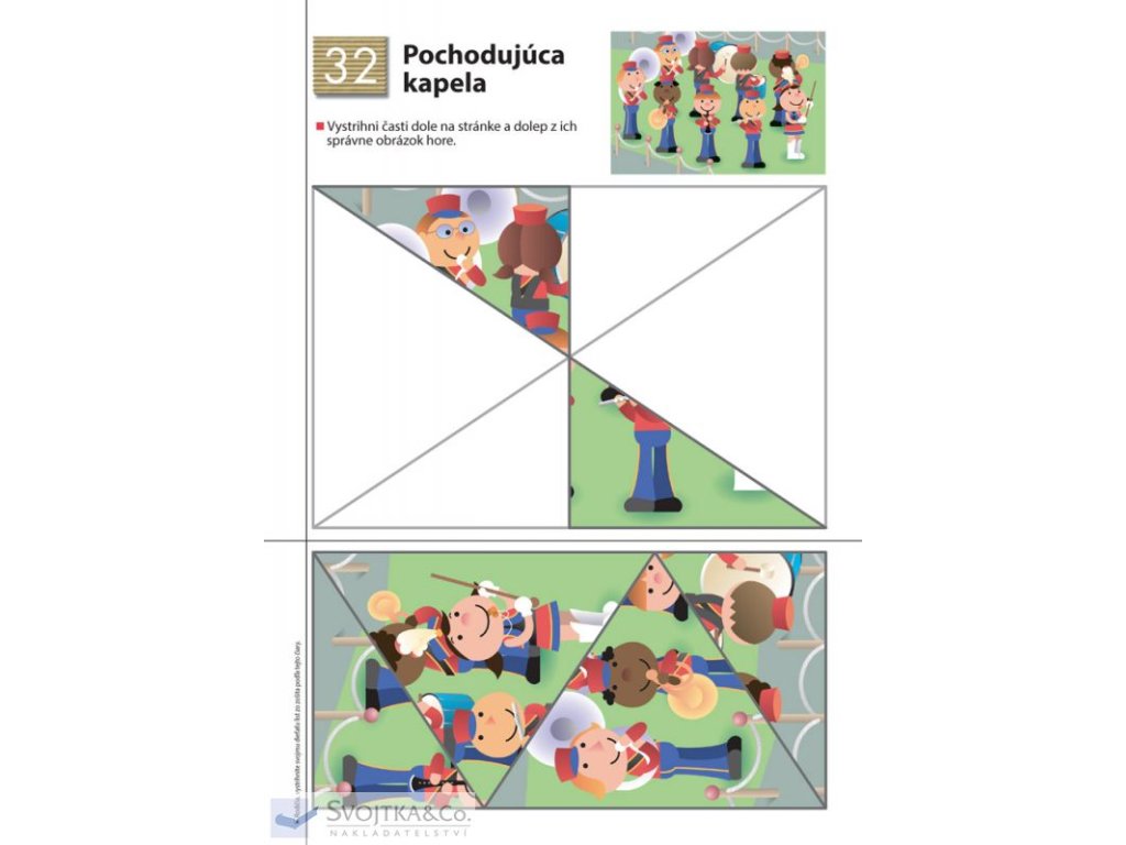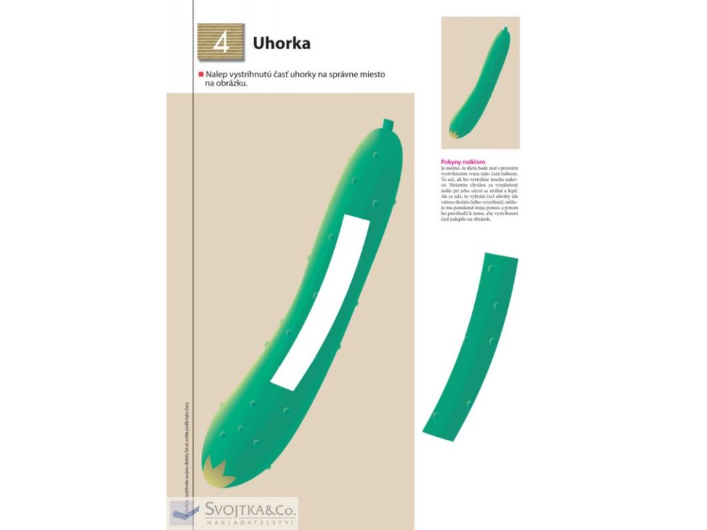 Ak už vaše dieťa úspešne zvládlo pracovný zošit Strihanie, tento zošit naň nadväzuje. Zámerom tohto pracovného zošita je zlepšiť zručnosť detí pri práci s nožnicami a lepidlom. Dieťa, ktoré si už osvojilo schopnosť používať nožnice, nájde na každej stránke tohto zošita rôzne tvary na vystrihnutie, ktoré bude následne lepiť na určené miesto.