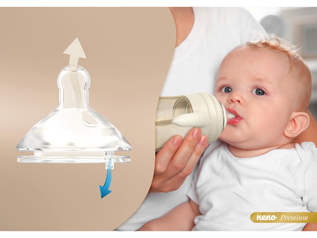 Neno Mio je inteligentná dojčenská fľaša 3 v 1 s cumlíkom proti kolike, ktorý ovplyvňuje prirodzenú polohu jazyka. Je ideálna na každodenné kŕmenie a pri rozširovaní jedálnička vášho bábätka. Je vyrobená z PPSU materiálu, ktorý je odolný voči mechanickému poškodeniu. Má špeciálny prietokový systém s otvorom v tvare krížika, ktorý možno použiť na podávanie mlieka, vody, čaju, šťavy a iného tekutého jedla.Vlastnosti