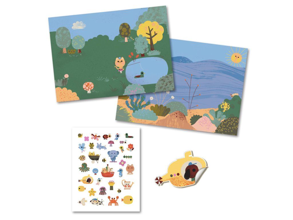 Samolepky sa dajú ľahko odlepovať a znovu nalepovať, takže dieťa môže scénu stále meniť: raz je to deň na pláži, inokedy piknik v prírode alebo prázdninový výlet plný zvieratiek a drobných detailov. Hrubšie samolepky sú príjemné na uchopenie a skvelo sa hodia aj pre menšie detské ruky.