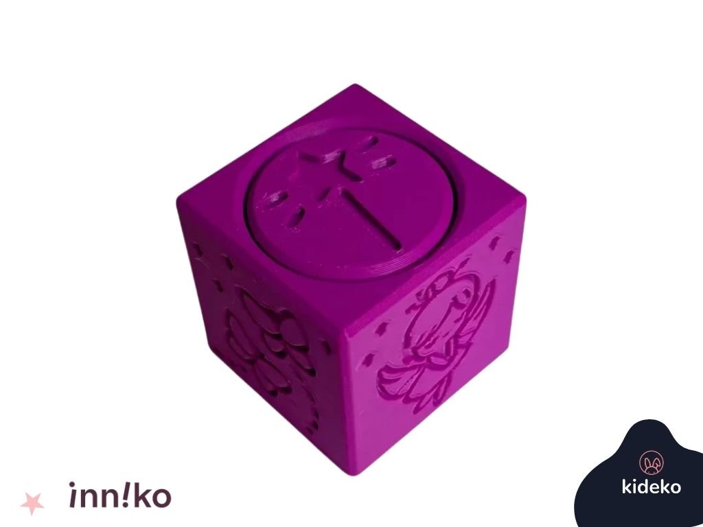 Preneste si čarovný svet víl priamo domov! Predstavujeme Otláčaciu kocku s valčekom 2v1 – Víly z dielničky dvoch českých mamičiek, ktoré s láskou vytvárajú zmysluplné a bezpečné hračky pre deti. Na jednotlivých stranách kocky nájdete víly, hríbikový domček, motýlikov a mesiačik s hviezdami – každý motív prináša nový čarovný príbeh. Vo vnútri kocky sa ukrýva valček s detailným vzorom čarovnej záhrady, s motívmi kúzelnej paličky a kľúča, ktoré dodajú každému výtvoru jemný magický dotyk.