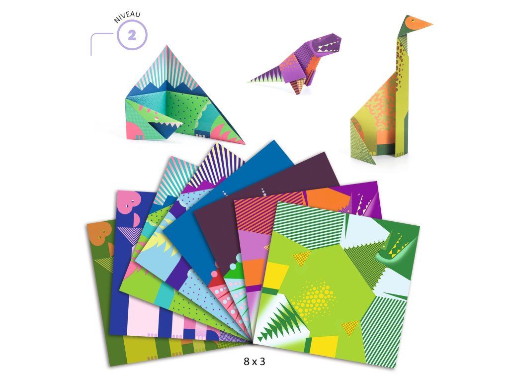 Origami Dinosaury je kreatívna sada, ktorá deti vtiahne do sveta dinosaurov a zároveň ich naučí základné techniky origami. Hárky sú predtlačené a majú naznačené línie skladania, takže skladanie je prehľadné a motivujúce. Podľa obrázkového návodu si deti vytvoria viac rôznych dinosaurov – ideálne na tvorenie doma aj ako aktivita na oslave.