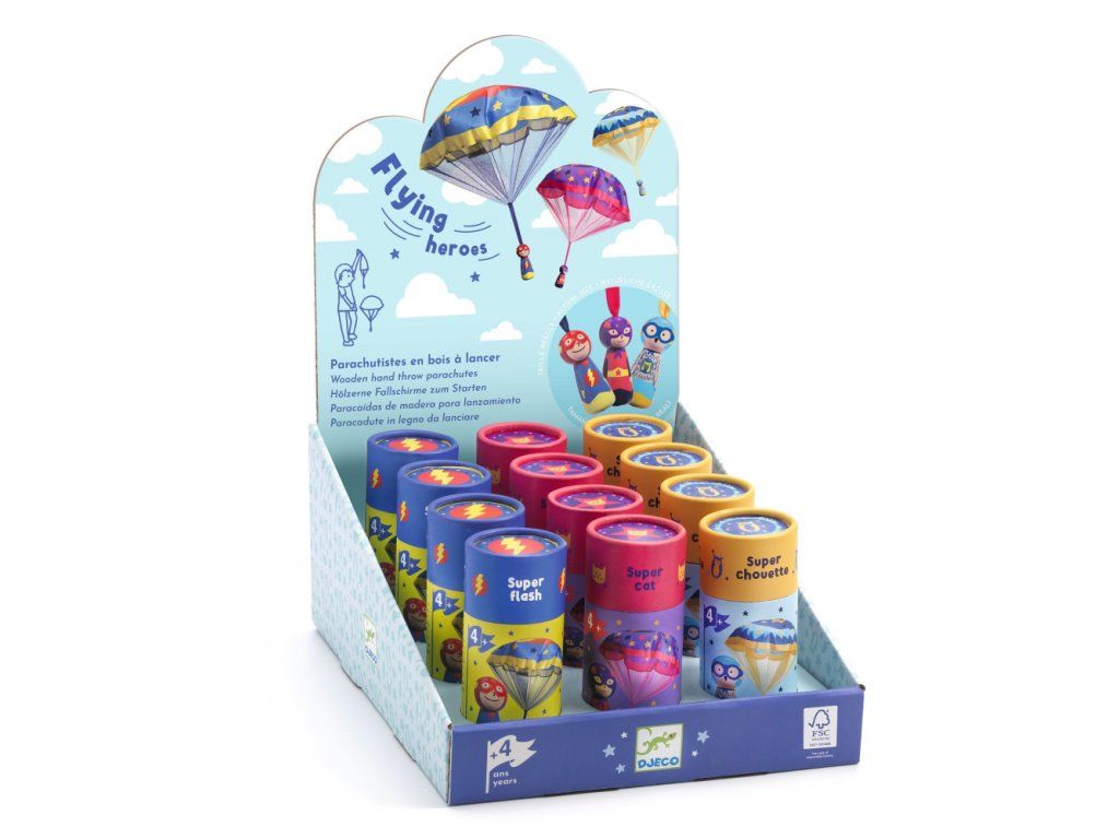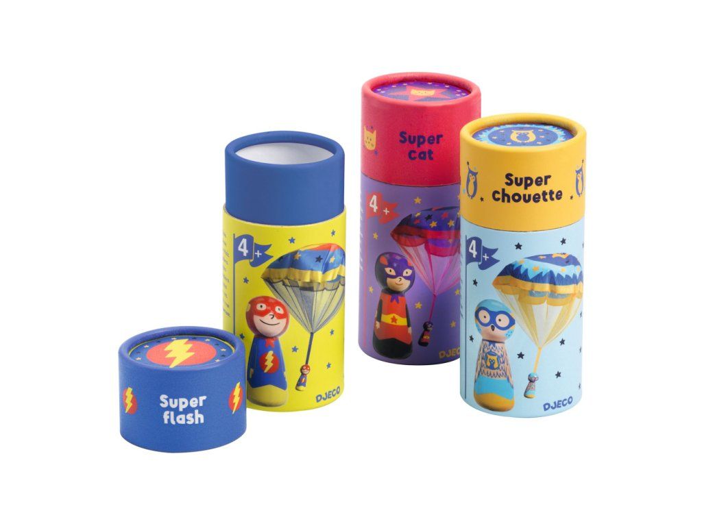 Objavte nový pohľad na klasickú hračku s Parašutistami – malými drevenými lietajúcimi hrdinami, ktorí sa ručne vyhadzujú do vzduchu. Dokážete ich udržať vo vzduchu čo najdlhšie? Tieto roztomilé postavičky s moderným dizajnom, ktoré zahŕňajú super bleska, super mačku a super sovu, sa predávajú každý samostatne v krásnych krabičkách.