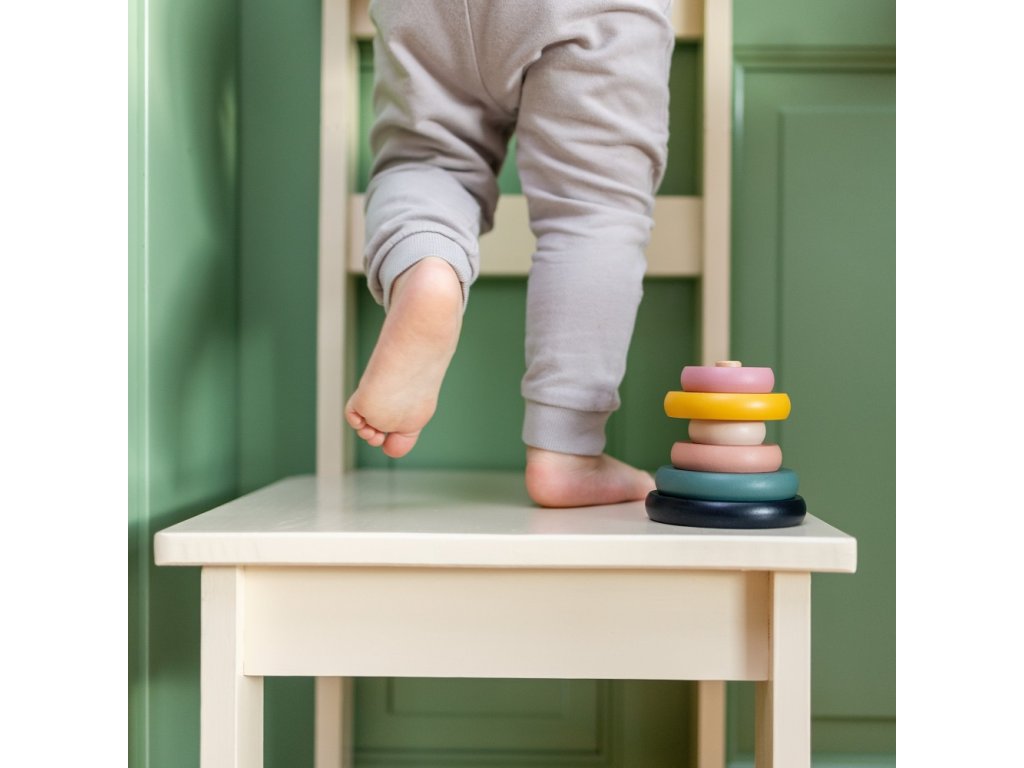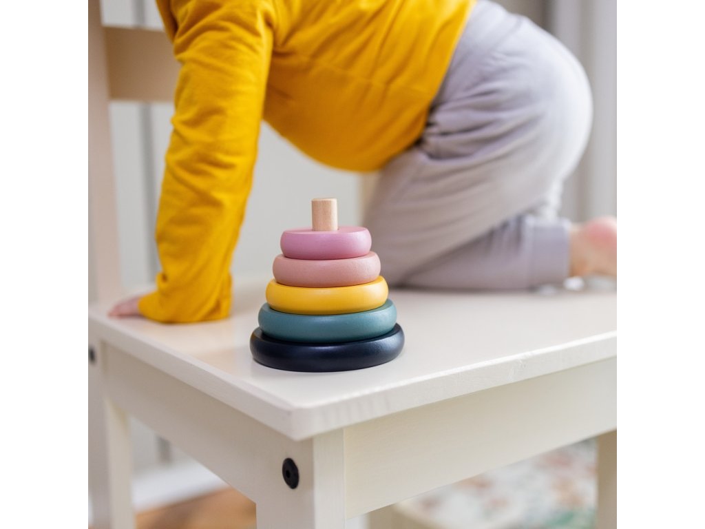 Pyramída sa skladá zo 6 farebných diskov, ktoré dieťa umiestni na základňu s kolíkom. Hračka dokonale rozvíja zmysel pre pozorovanie a učí logickému mysleniu. Vďaka pevnému spracovaniu je stabilná a odolná.