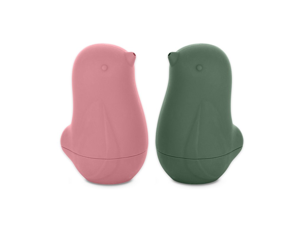 PETITE&MARS Hračky silikónové do kúpeľa Love birds Rose Green 6m+