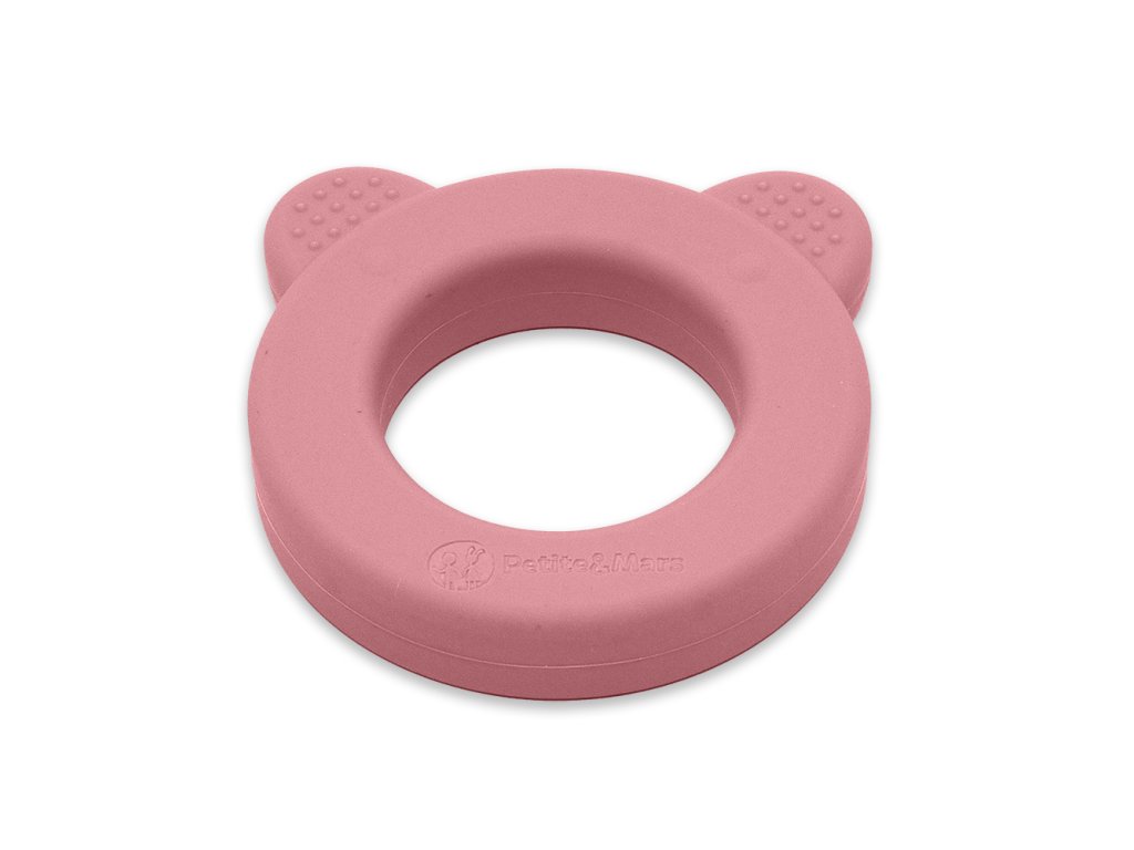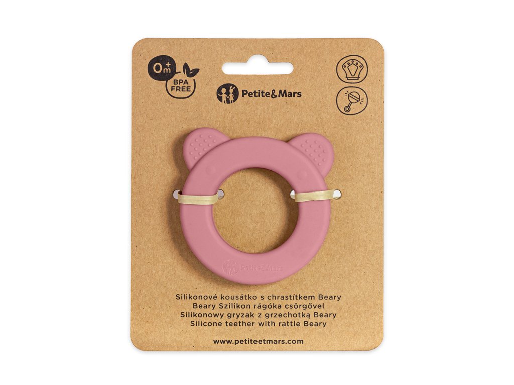 PETITE&MARS Hryzačka silikónová s hrkálkou Beary Dusty Rose 0m+