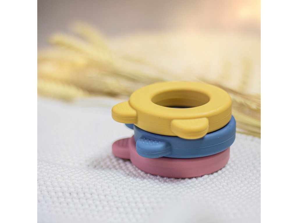 Silikónové hryzátko BEARYMäkké silikónové hryzátko je celé vyrobené z potravinárskeho silikónu bez BPA. Najkvalitnejšie odolné materiály zaručujú bezpečnosť vášho dieťatka počas hry a prerezávania zúbkov. Pružný silikón je dokonale vhodný pre citlivé detské ďasienka. Pomáha zmierniť bolesť, ktorá vzniká pri prerezávaní zúbkov, pretože pri hryzení hryzátka sa jemne masírujú ďasná. Hryzátko možno schladiť v chladničke a dať dieťatku studené. Rôzne povrchy hryzátka stimulujú správny vývoj čeľuste. Vo vnútri hryzátka sa nachádzajú zrniečka, ktoré pri každom pohybe jemne hrkajú. Zvuk stimuluje zvedavosť dieťaťa a pomáha rozvíjať motorické zručnosti.