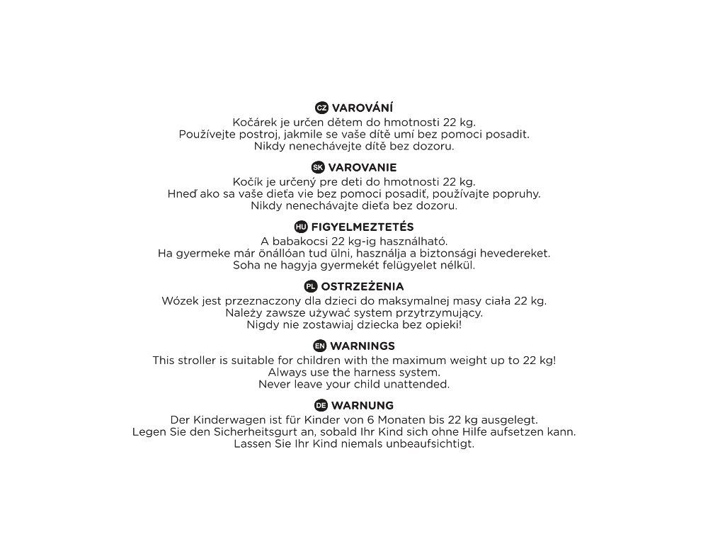 Kočík je určený pre deti od 6 mesiacov do 22 kg. Maximálna hmotnosť zaťaženia kočíka je do 25 kg.