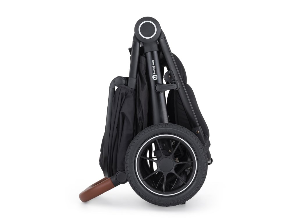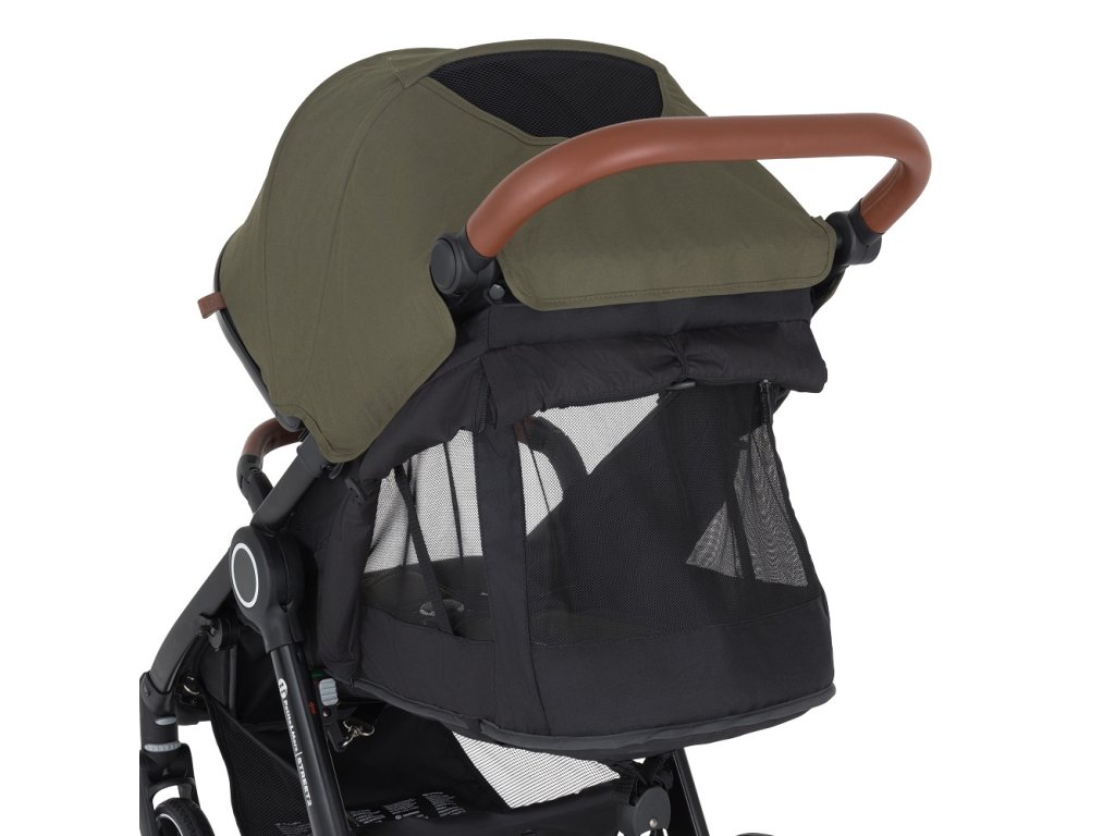 Konštrukcia s čiernou koženkovou rukoväťou a madlom.Kúpte zvlášť kočík, zvlášť striešku s polstrovaním na popruhy a kolesá podľa vlastného výberu! Bonusom je farebná variabilita v podobe dokúpenia striešky vo farbách Basic Line alebo limitovanej edície striešok Limited 100. Jeden kočík na mnoho spôsobov.