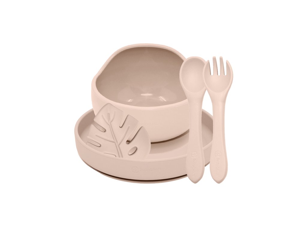 PETITE&MARS Set jedálenský silikónový TAKE&MATCH 4 ks Desert Sand 6m+