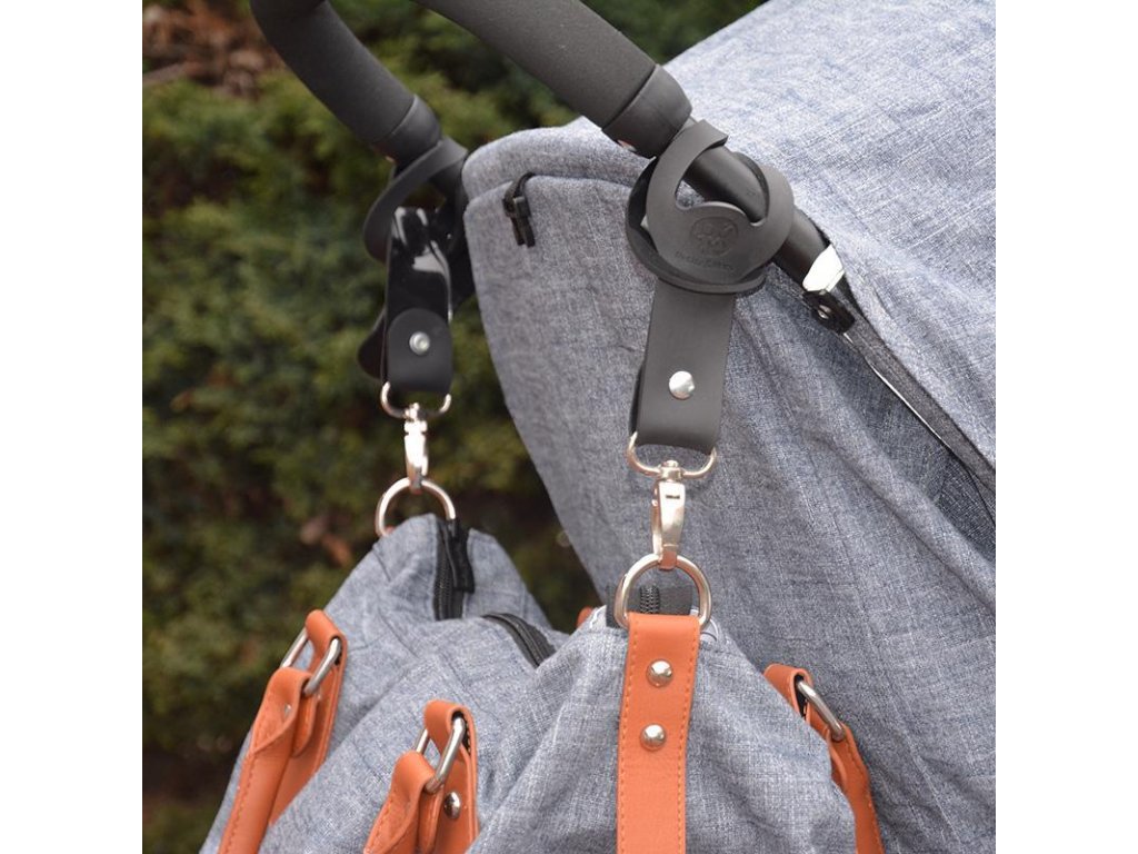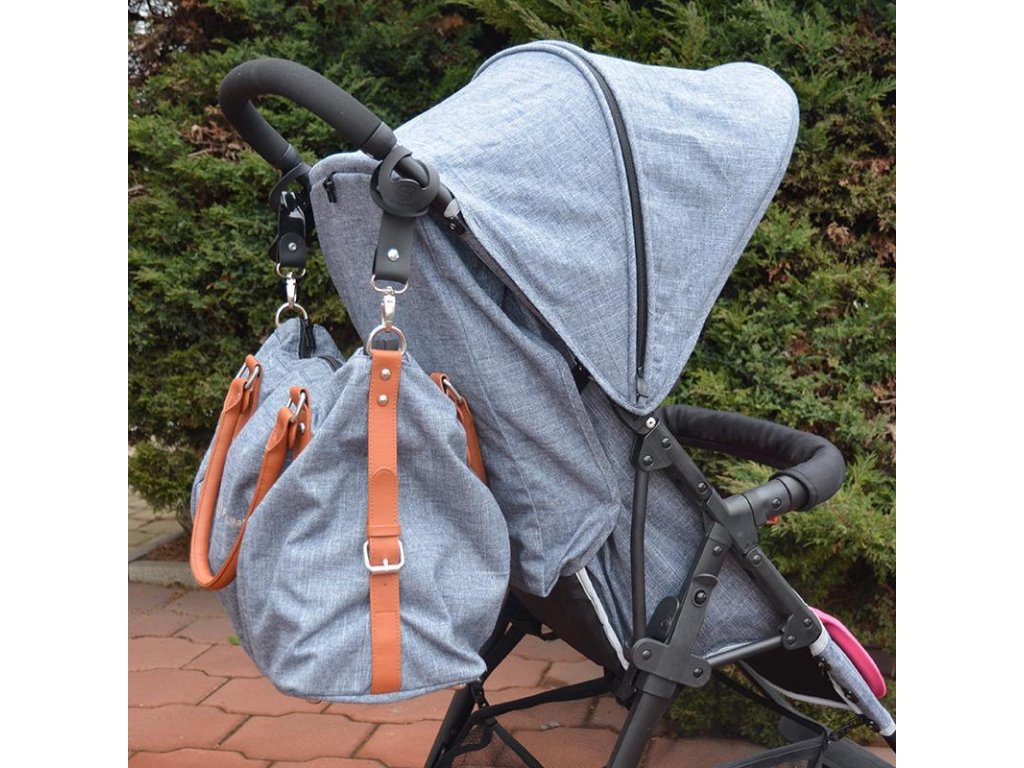 Praktické úchytky na pripevnenie prebaľovacej tašky na kočík. Koniec s karabínkou jednoducho prevlečte okom obtočeným okolo konštrukcie kočíka/rukoväte.- Jednoduchá inštalácia pomocou karabiniek
