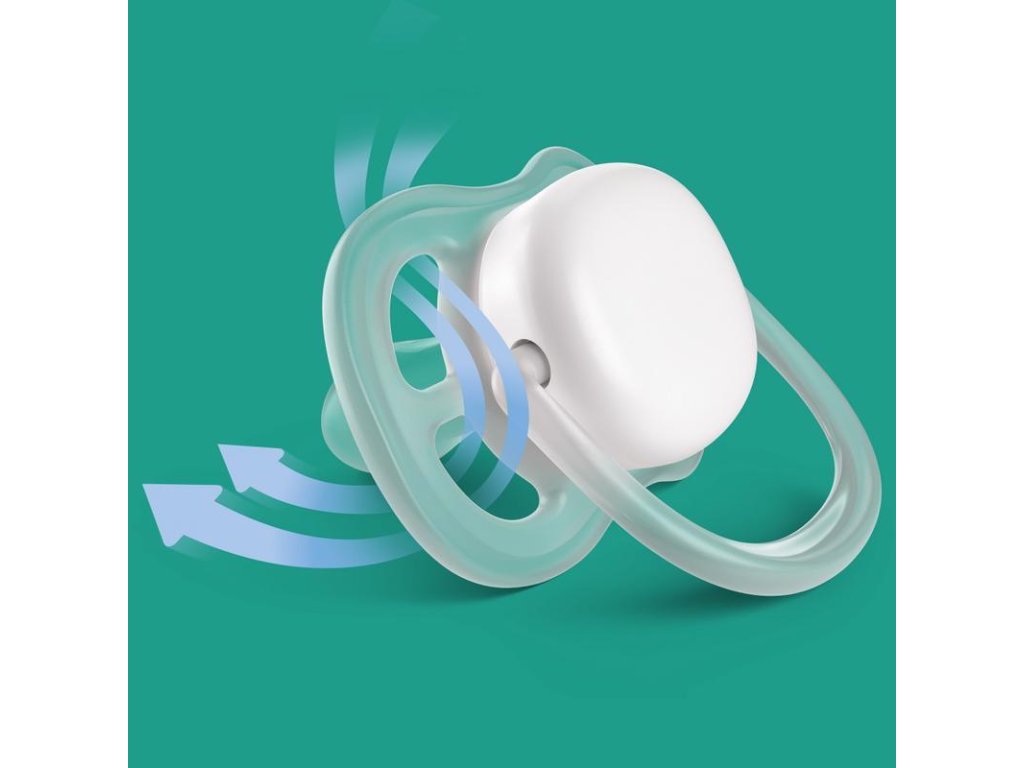 Umožnite pokožke vášho dieťatka dýchať. Mimoriadne veľké otvory na vzduch na pohodlnejšie utíšenie.Utišuje vďaka dostatku vzduchu. Cumlík Philips Avent ultra air má mimoriadne veľké otvory na vzduch, ktoré udržia pokožku vášho dieťatka suchú. K dispozícii v rôznych farbách a vzoroch.