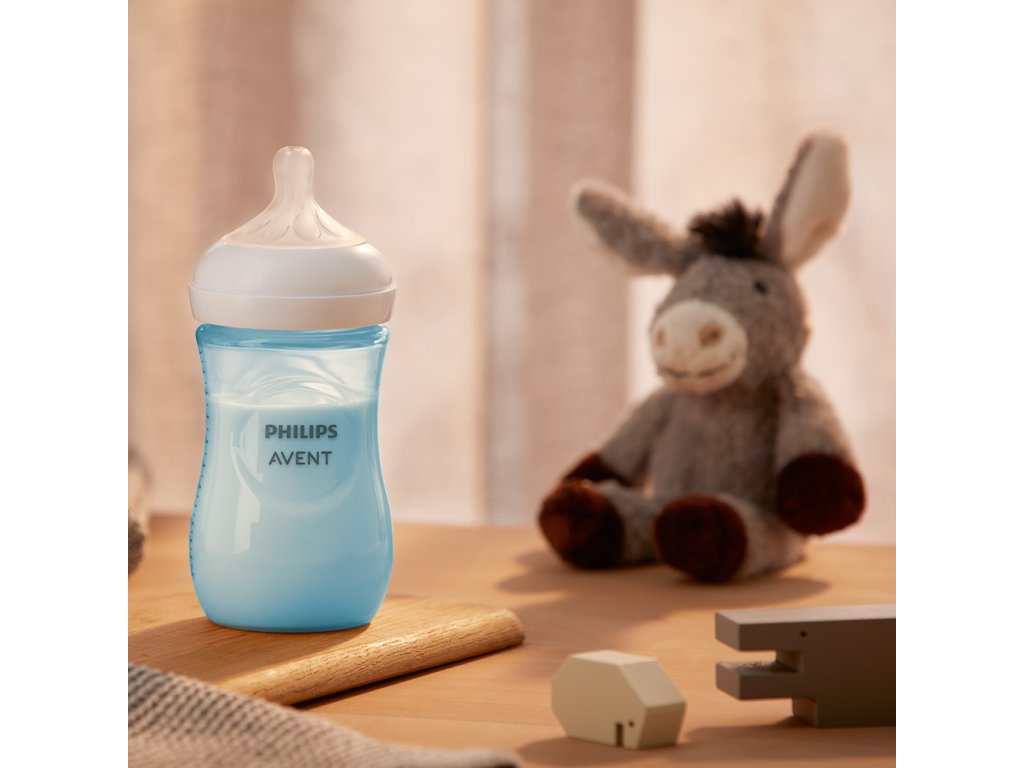 Fľaša Natural Response podporuje rytmus pitia dieťaťa, rovnako ako prsník.- Modrá fľaša 260 ml, 1m+