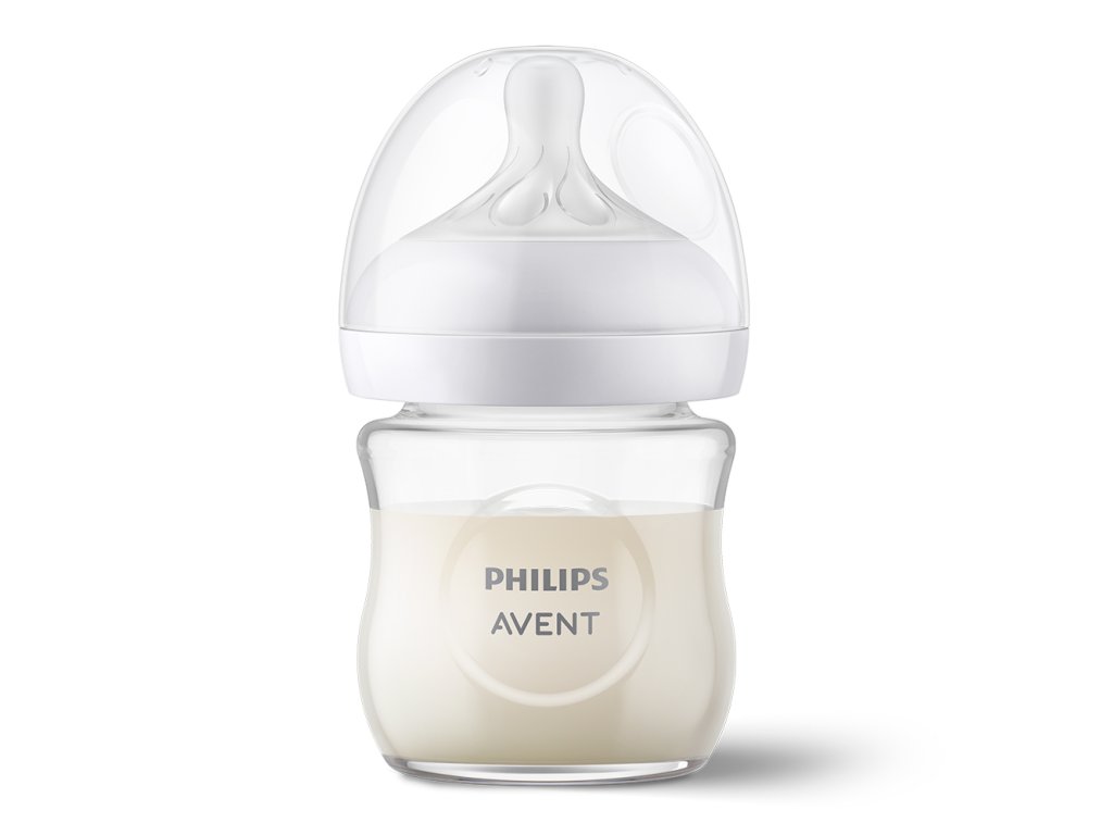 Fľaša Natural Response podporuje rytmus pitia dieťaťa, rovnako ako prsník.- Sklenená fľaša 120 ml, 0m+