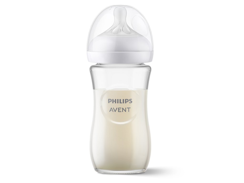 Fľaša Natural Response podporuje rytmus pitia dieťaťa, rovnako ako prsník.- Sklenená fľaša 240 ml, 1m+