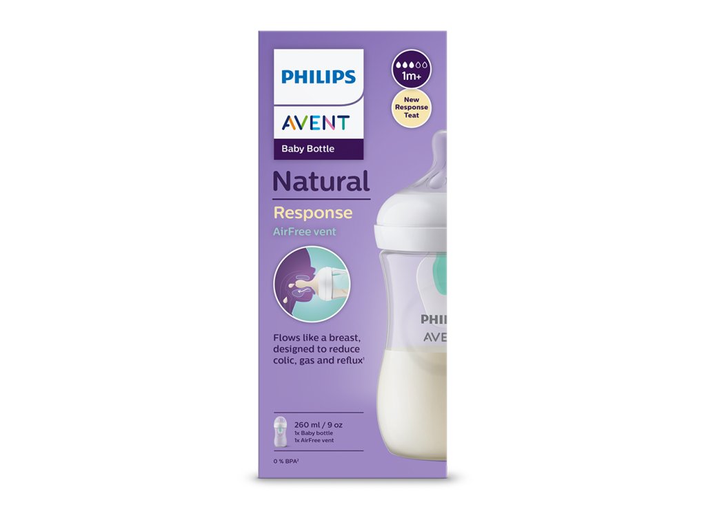 Philips AVENT Láhev Natural Response s ventilem AirFree 260 ml, 1m+dárek PETITE&MARS Miska 6m+