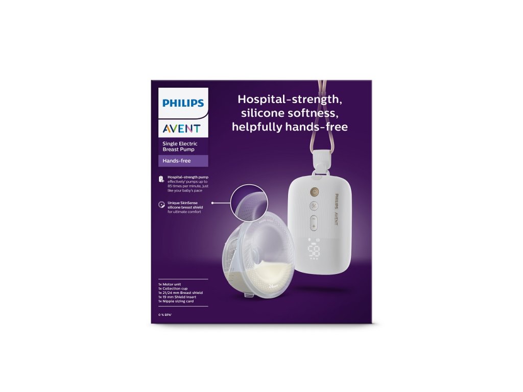 Jednoduchá elektrická odsávačka mlieka Philips Avent Hands-free je určená na efektívne a pohodlné odsávanie mlieka. Napodobňuje rytmus vášho dieťaťa a vďaka výkonu, jemnosti a ľahkosti je ideálnym spoločníkom pri odsávaní bez použitia rúk.
