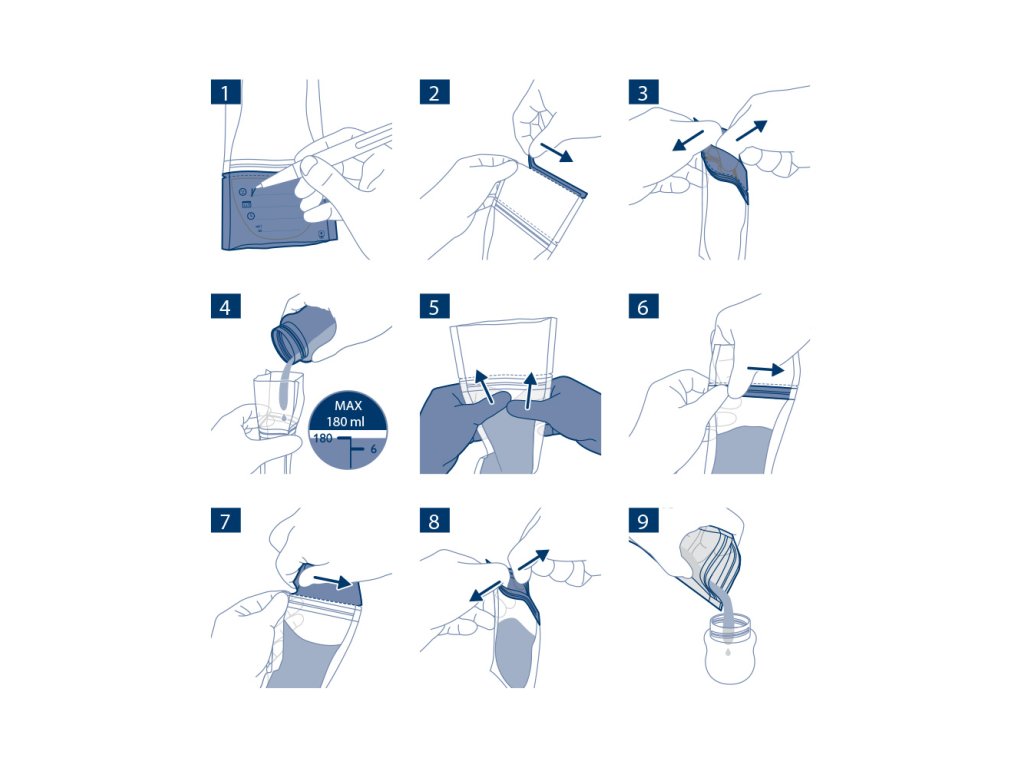 - Vrecká na skladovanie materského mlieka sú určené iba na