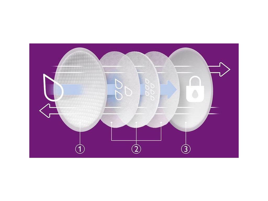 Dermatologicky testované. Jednotlivo balené pre dokonalú hygienu. Vyvinuté v spolupráci s laktačnou poradkyňou Vicki Scott, ktorá viac ako 15 rokov pomáha mamičkám pri dojčení. Pocit sucha a pohodlia cez deň i v noci.