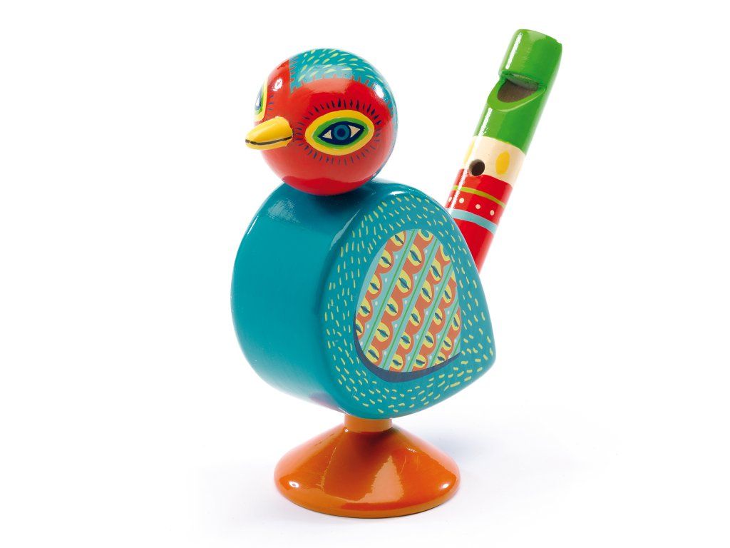 Píšťalka vtáčik Animambo od značky Djeco je milá drevená hudobná hračka, ktorá deťom umožňuje vytvárať jemné pískavé tóny jednoduchým fúkaním. Vďaka tvaru vtáčika a farebnému dizajnu hračka prirodzene priťahuje pozornosť detí a motivuje ich k prvému objavovaniu hudby.