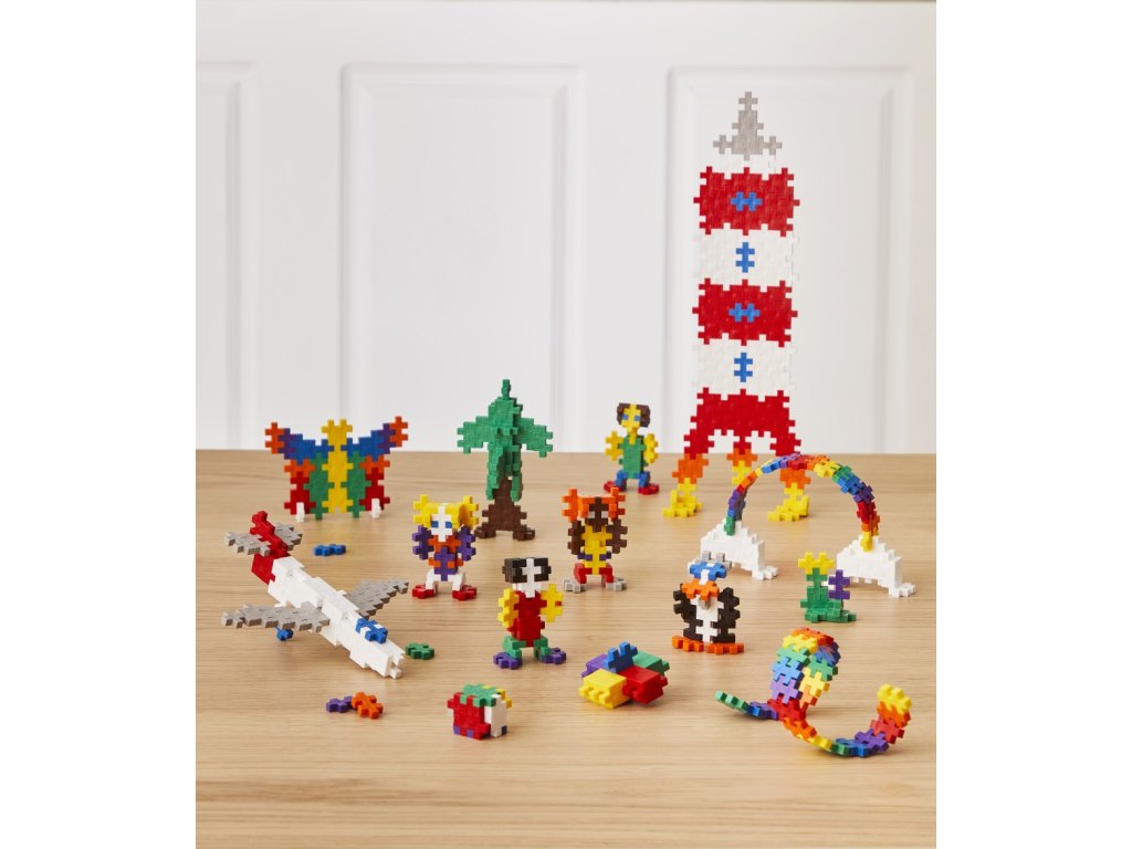 Sada Plus-Plus Basic Box obsahuje 600 MINI dielikov v 10 rôznych základných farbách, vďaka ktorým môžu deti vytvárať farebné 2D mozaiky aj zložité 3D modely. Tvoriť môžu podľa vlastnej fantázie alebo sa inšpirovať pomocou priloženého farebného návodu. Dieliky sú uložené v praktickom uzatvárateľnom plastovom boxe, ktorý je ideálny na domáce hranie aj do škôlok či škôl.