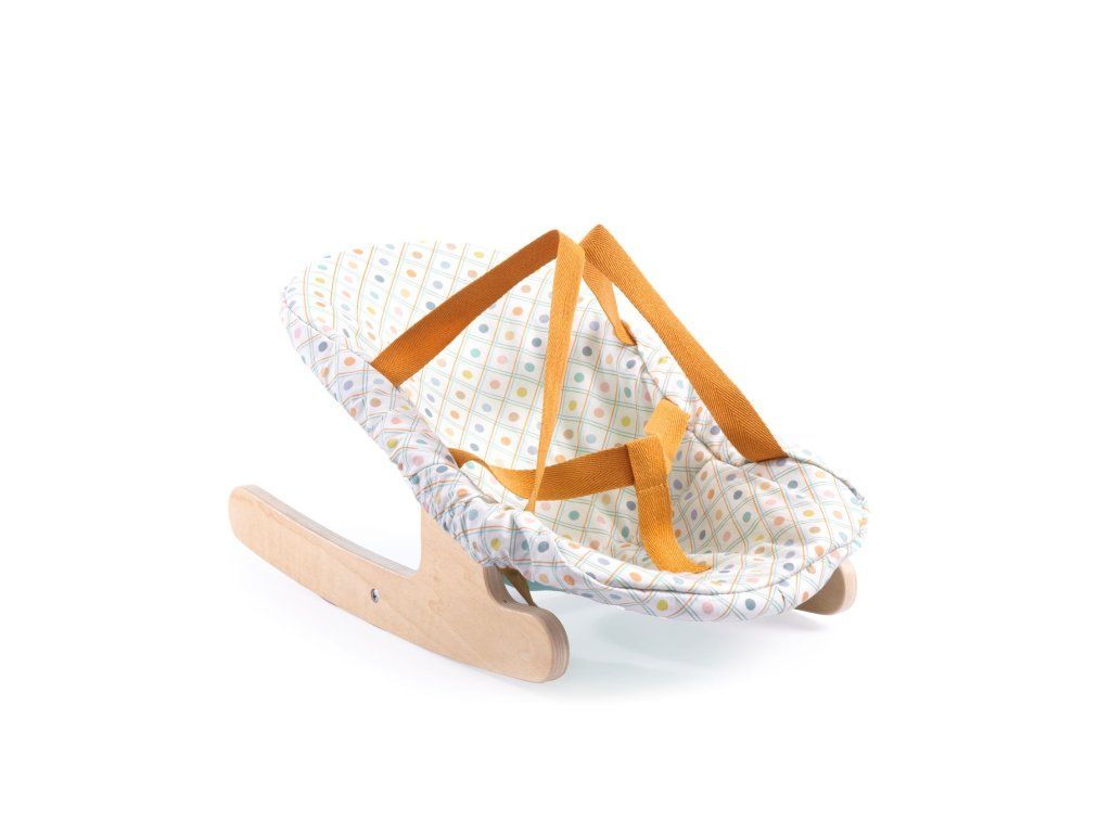 Hojdacia „kolíska“ pre bábiky zo série Pomea od Djeco je v skutočnosti štýlové hojdacie lehátko – ideálne na uspávanie, hojdanie a pokojné rituály.Konštrukcia je pevná a stabilná a mäkký poťah poskytuje bábike pohodlie, aby „odpočívala“ ako skutočné bábätko.